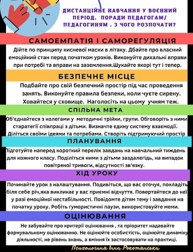 * Навчання у такий складний час – це новий виклик для педагогів, але знайте, що безумовна любов до дітей та підтримка допоможе стабілізувати психологічний стан дитини.