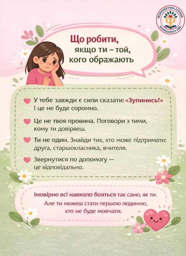 4. Переконуйте учнів, особливо учнів молодших класів, у тому що ваше завдання – перетворити школу на максимально безпечне для них місце, і що їхні батьки чи опікуни зроблять усе можливе, щоб вони почувалися у безпеці.