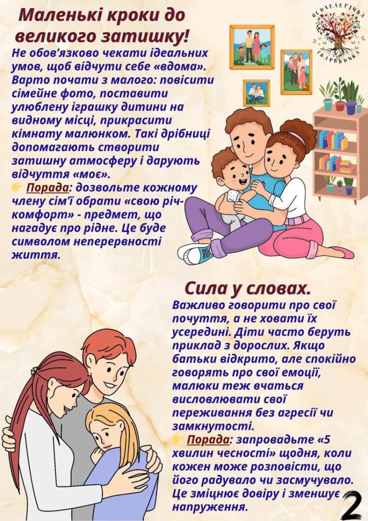 7. Відновіть відчуття “нормальності”: Будьте спокійні і зважені, заспокойте дітей і спробуйте максимально швидко повернутися до повсякденної рутини. У цьому вам допоможуть звичайні розмови – обговорення домашнього завдання і т.п., але при цьому уникайте додаткового тиску на дітей. Будь-яка поведінка, що може зашкодити іншим чи відволікати їх, є неприпустимою, однак пам’ятайте, що для такого поводження можуть бути певні причини.