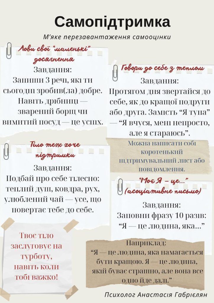10. Не забувайте піклуватися про себе – бережіть власне емоційне та фізичне здоров’я. Адже тільки здоровий вчитель зможе підтримати та допомогти своїм учням. Діти, які бачать навколо себе впевнених, спокійних та бадьорих дорослих, швидше повертаються у норму.