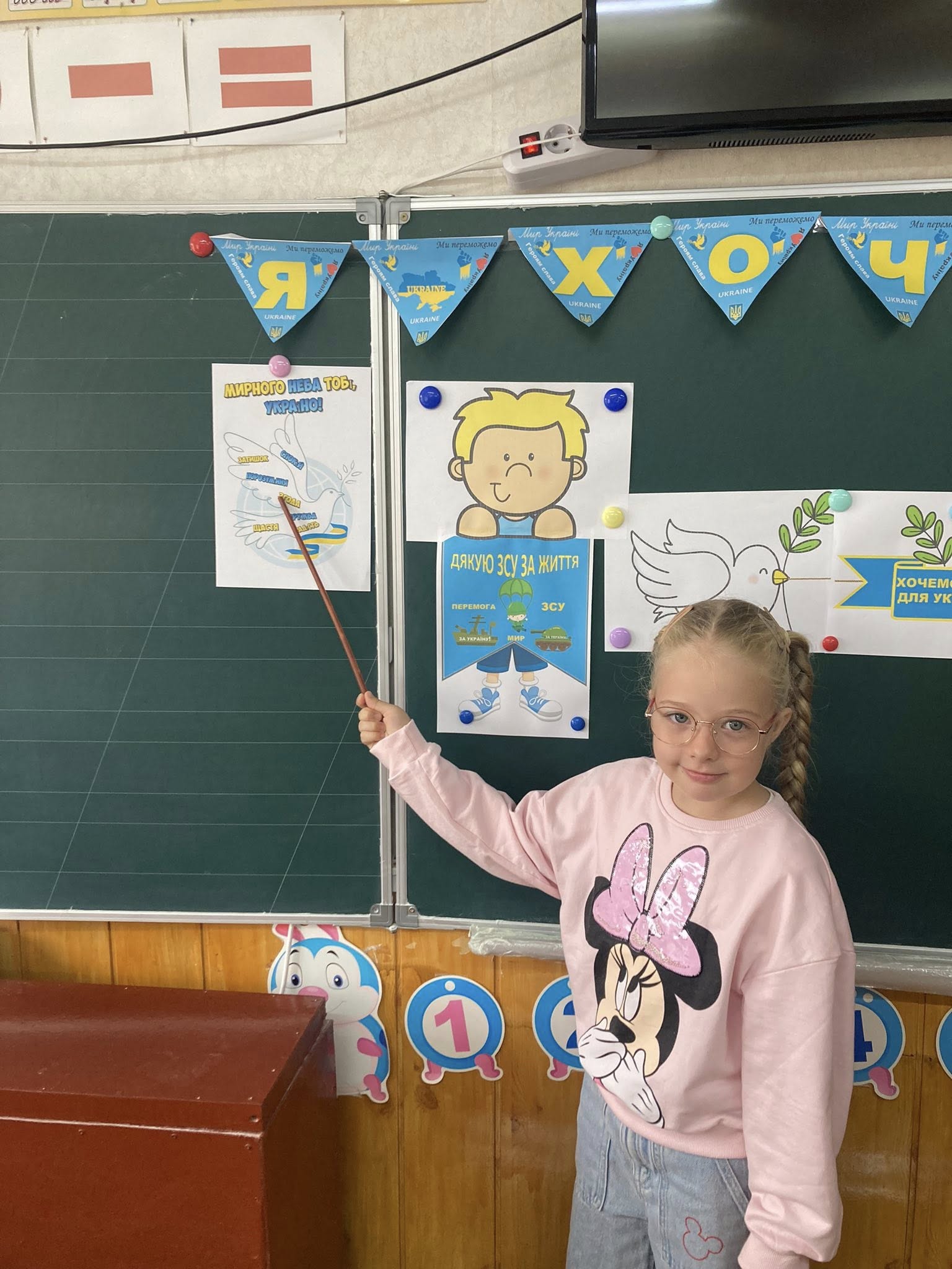 А на уроці мистецтва малювали малюнки, присвячені мирному небу, голубам та сонячній Україні.