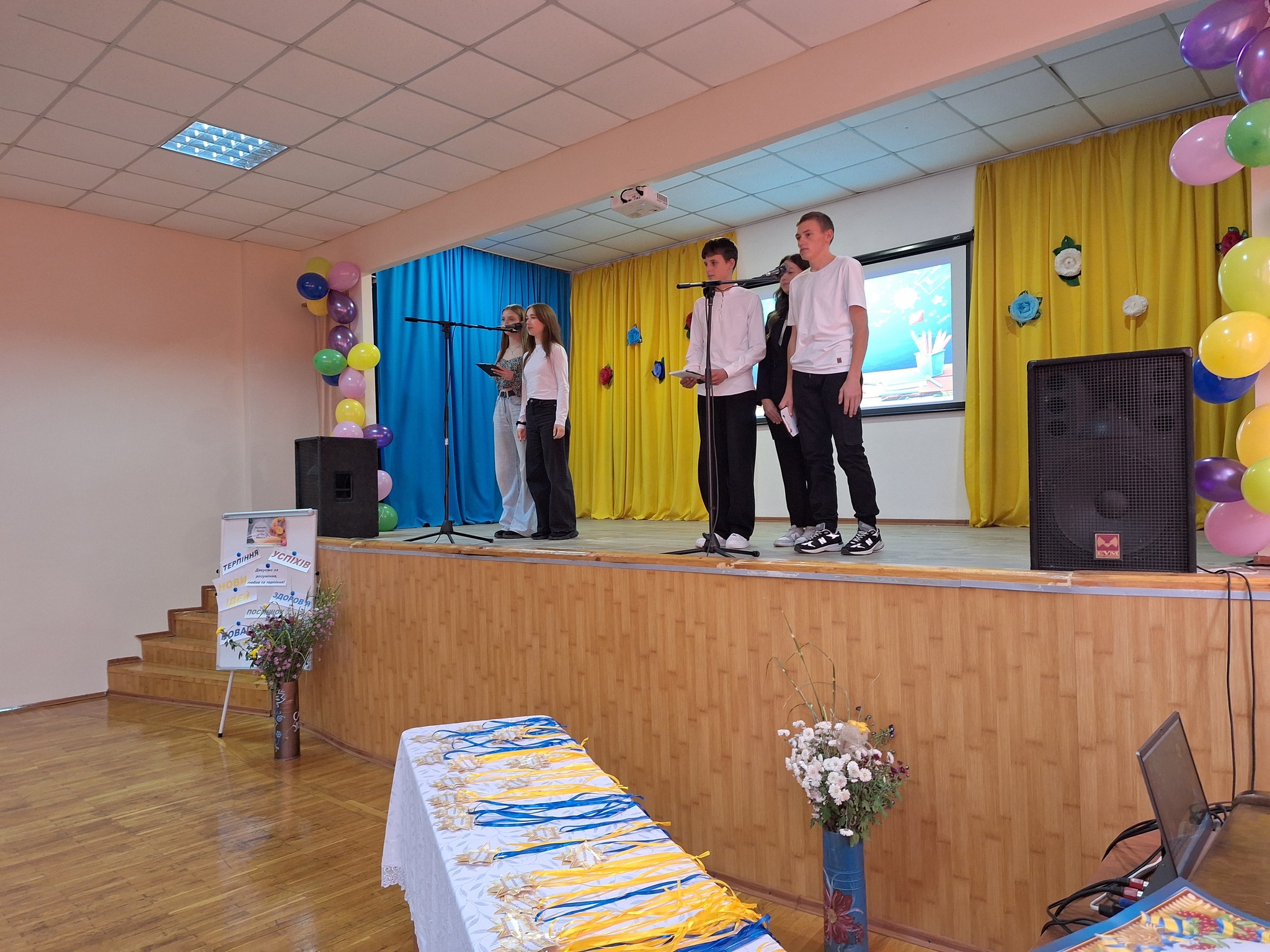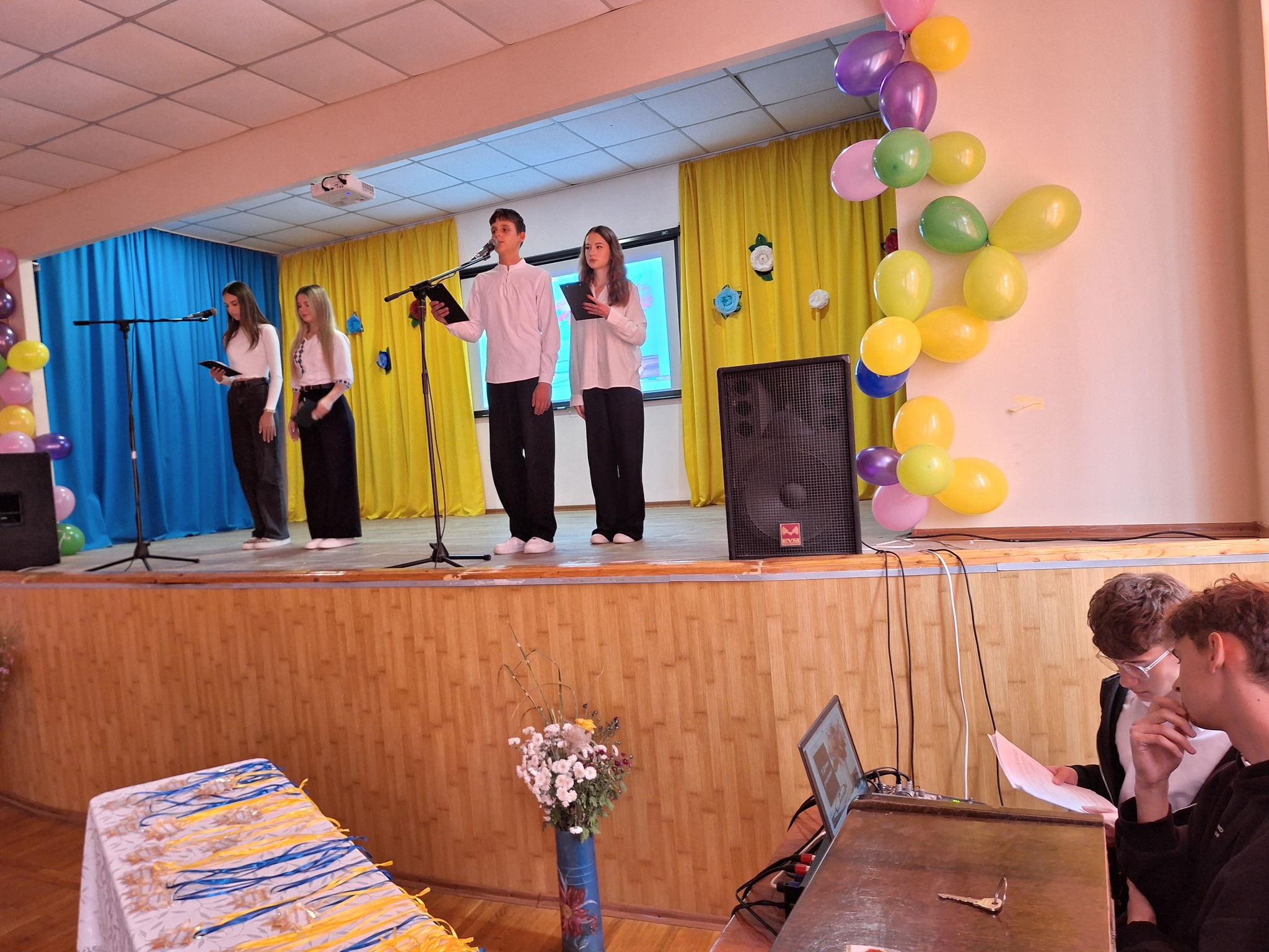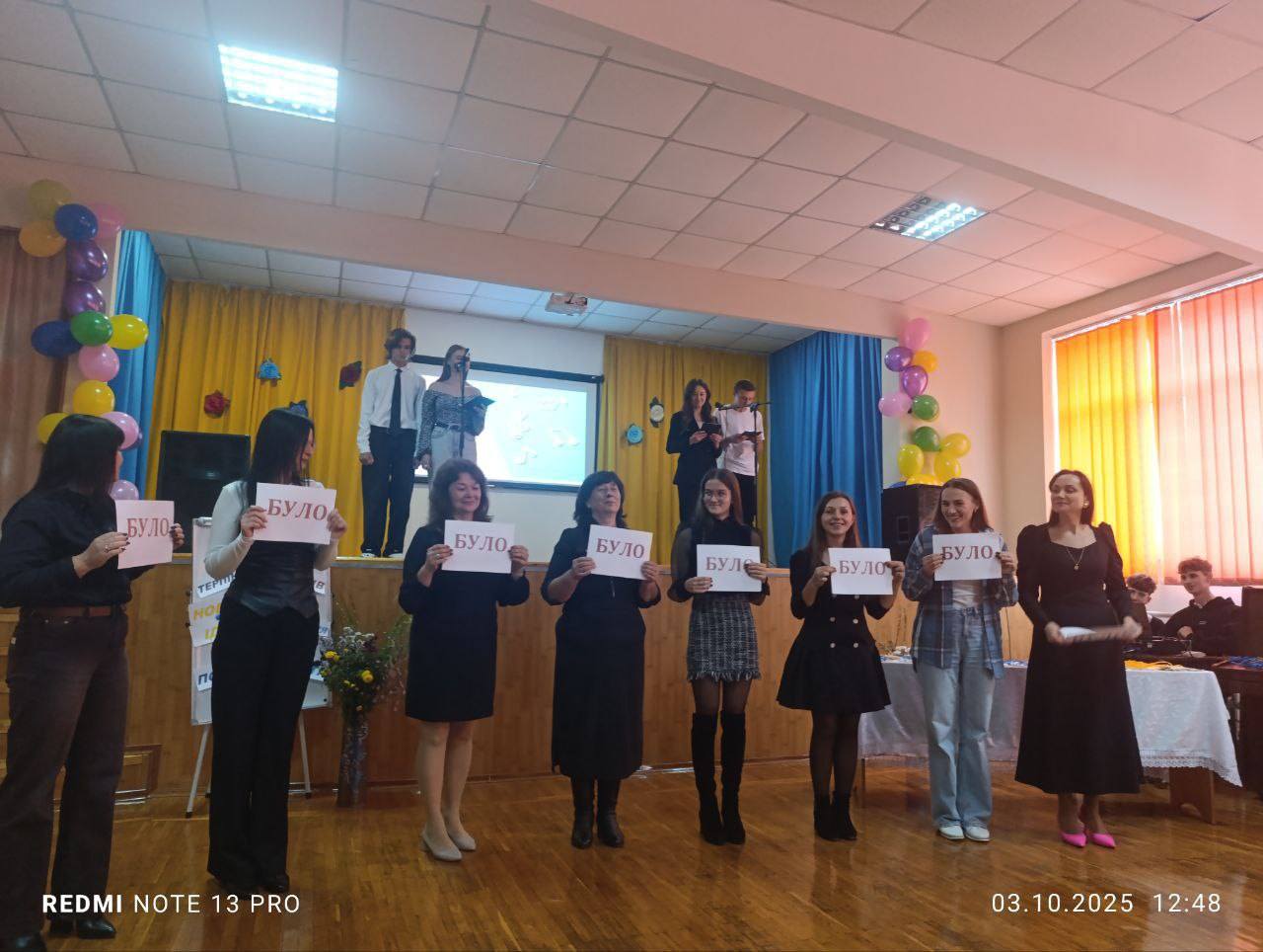 Учні 11-А класу привітали вчителів із професійним святом, даруючи їм щирі слова подяки, веселі жарти та яскраві пісенні й танцювальні номери. У залі панувала тепла, родинна атмосфера.