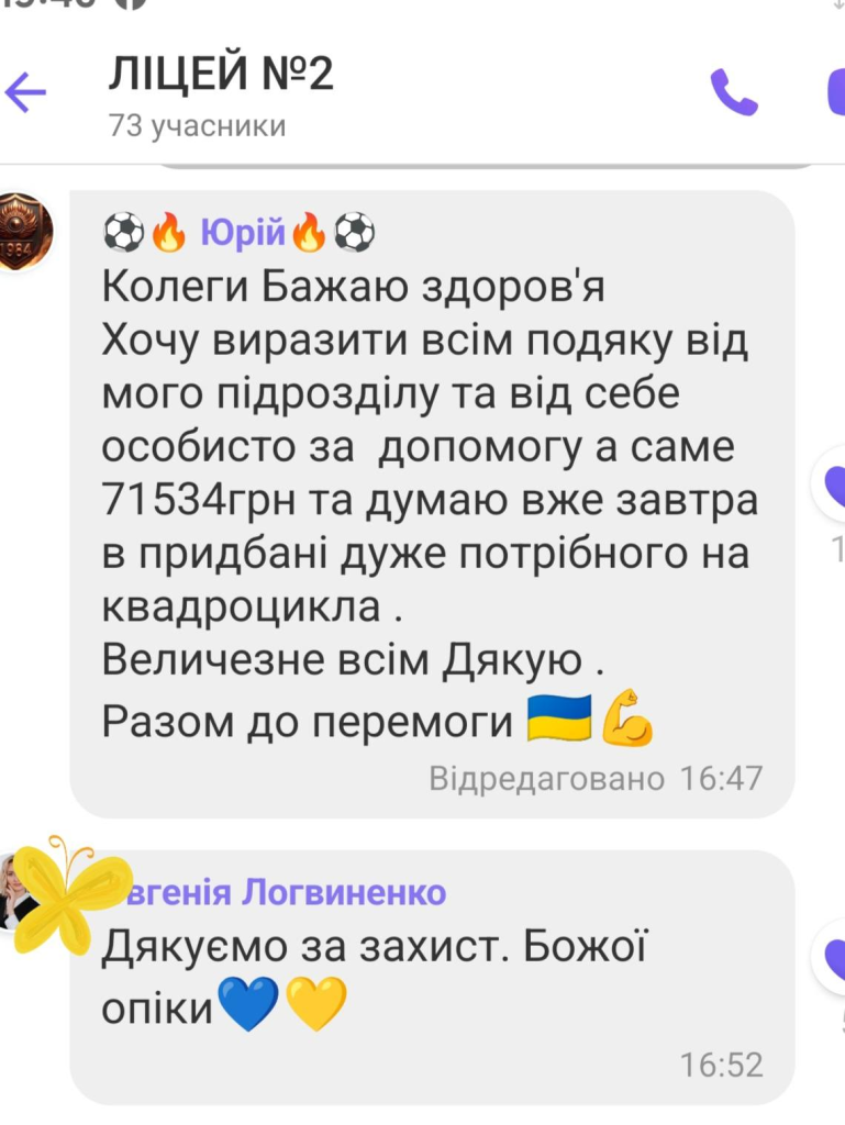 Завдяки спільним зусиллям учнів, батьків і вчителів ми зібрали 71 534 гривні, які вже перераховано на підтримку Збройних Сил України