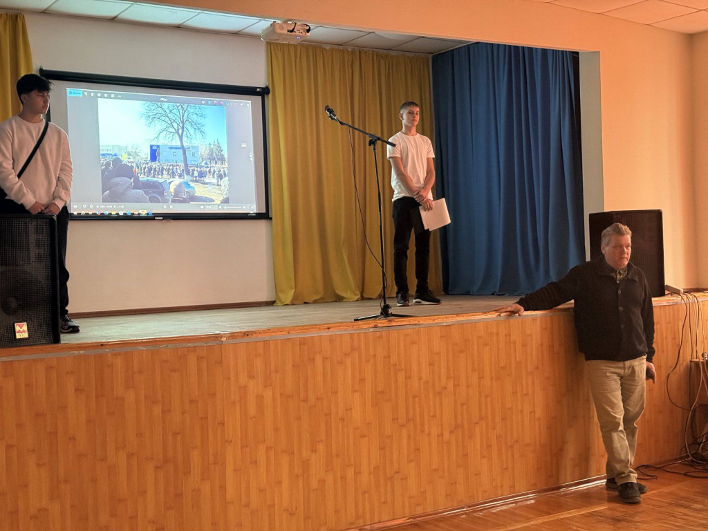 21 листопада Україна святкує День Гідності та Свободи. Учні 10-Б класу підготували захід з такої нагоди. Вони розповіли про трагічні події Революції Гідності в листопаді 2013 року. Учителі Дюдюк Сергій Юрійович та Лукашенко Світлана Тарасівна поділилися своїми спогадами про Майдан та наголосили, що ми повинні цінувати життя і свободу. Ми гідні бути незалежними та жити під мирним небом!!!