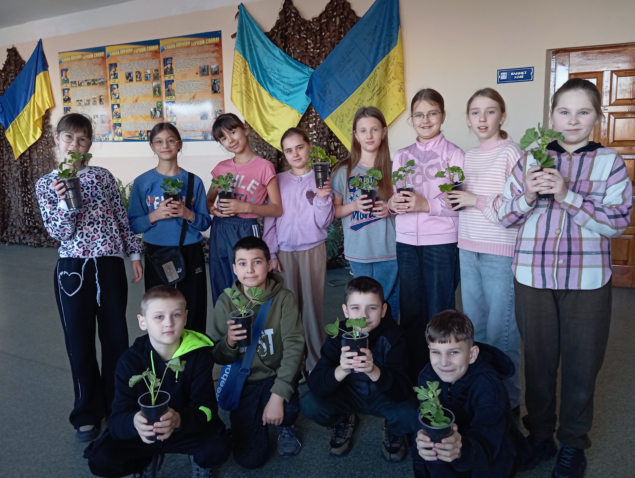 Діти власноруч висадили вазони з пеларгоніями — ніжними, але неймовірно яскравими квітами, які стануть частиною шкільної краси.