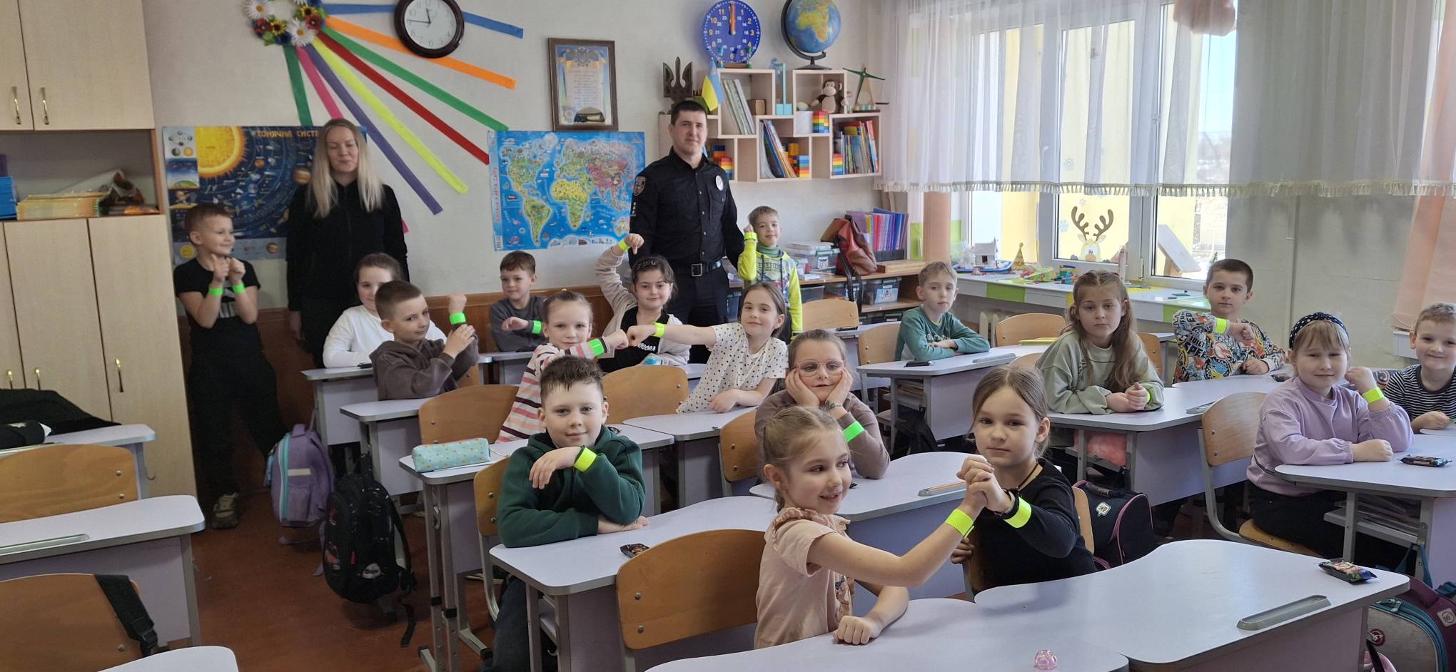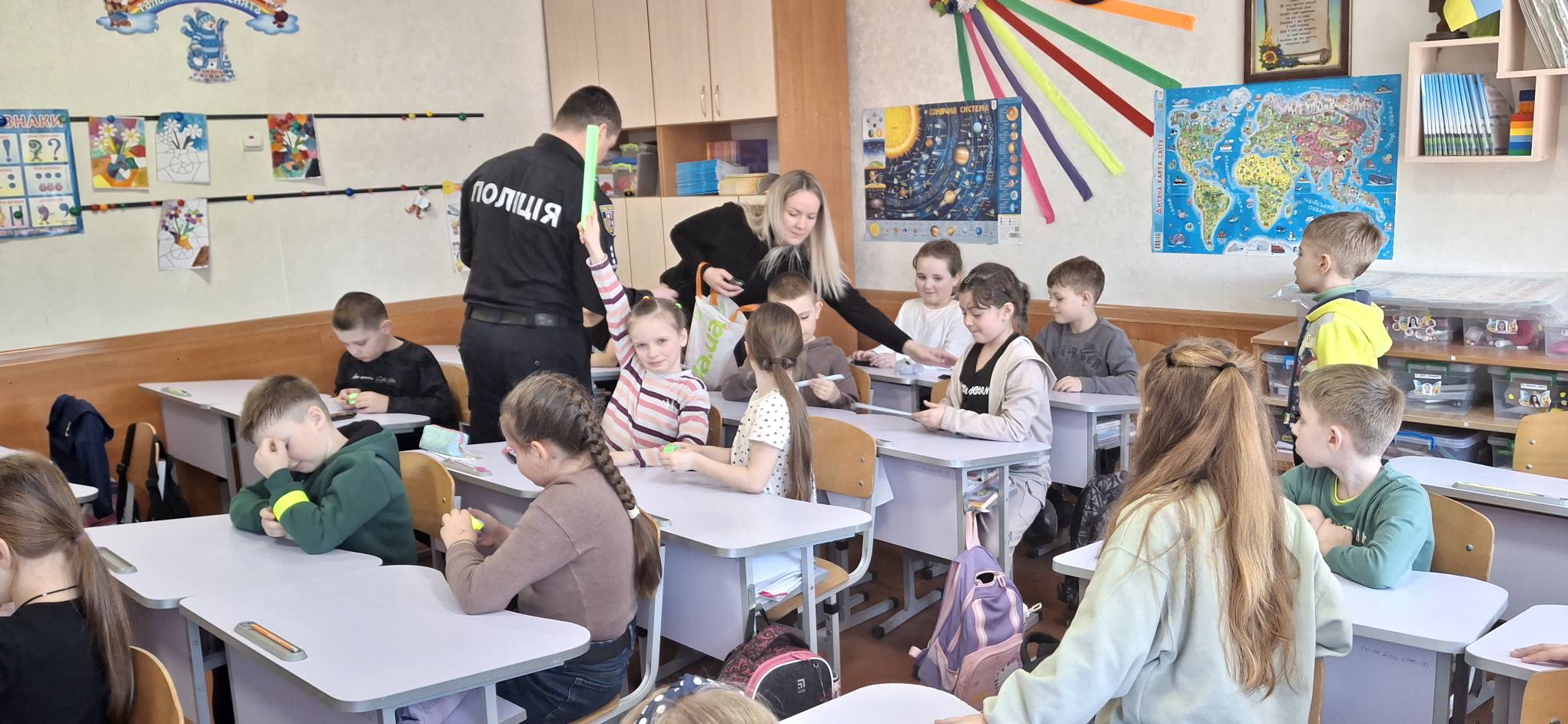 Також провели бесіду «Безпека на дорозі». Поліцейські нагадали другокласникам головні правила вуличного руху: як правильно переходити дорогу, де можна гратися, а де —категорично ні, та що означають сигнали світлофора.