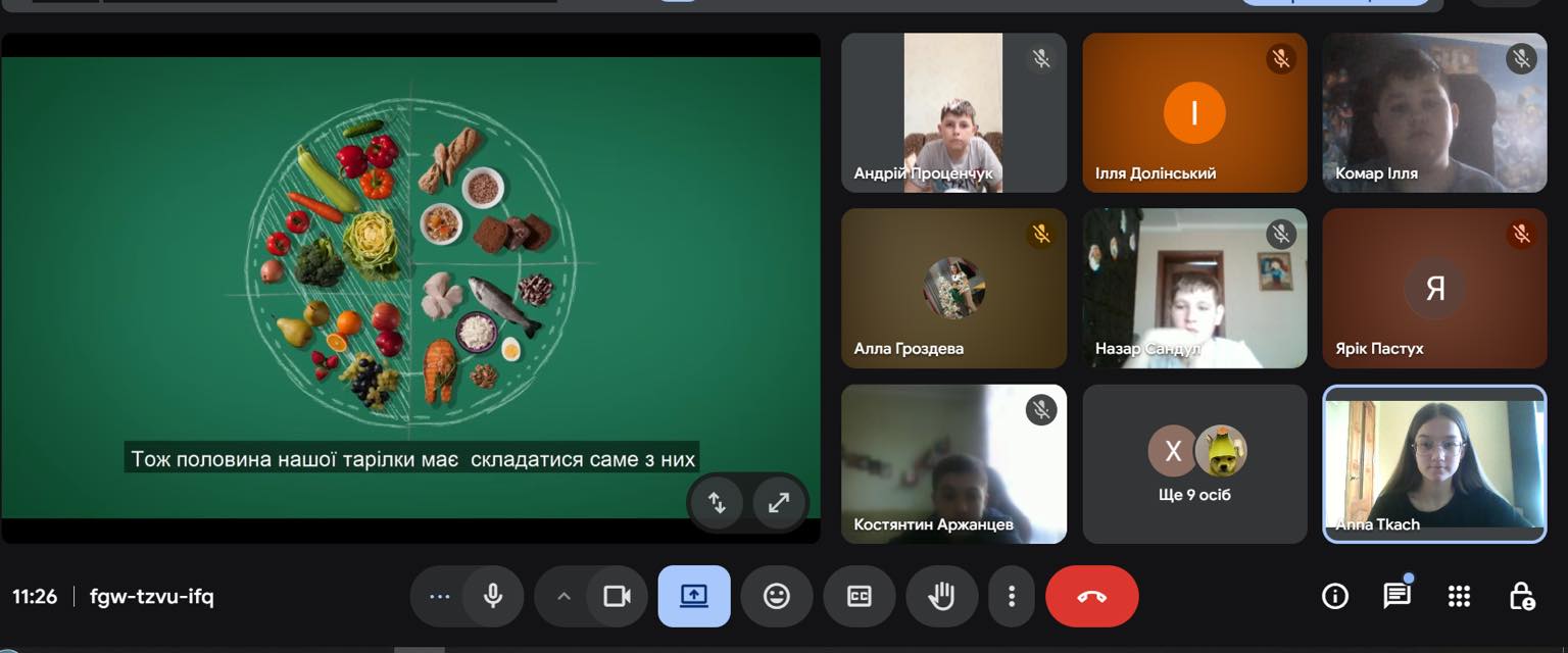 Під час заняття школярі переглянули пізнавальне відео, а також ознайомилися з принципом тарілки здорового харчування, який допомагає зрозуміти, як правильно поєднувати різні групи продуктів у щоденному раціоні.