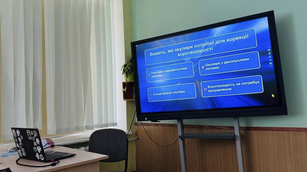Опрацювали правила збереження зору: дотримання належного освітлення під час роботи, безпечної відстані до тексту й екранів, чергування зорового навантаження та відпочинку очей, профілактику короткозорості й далекозорості.
