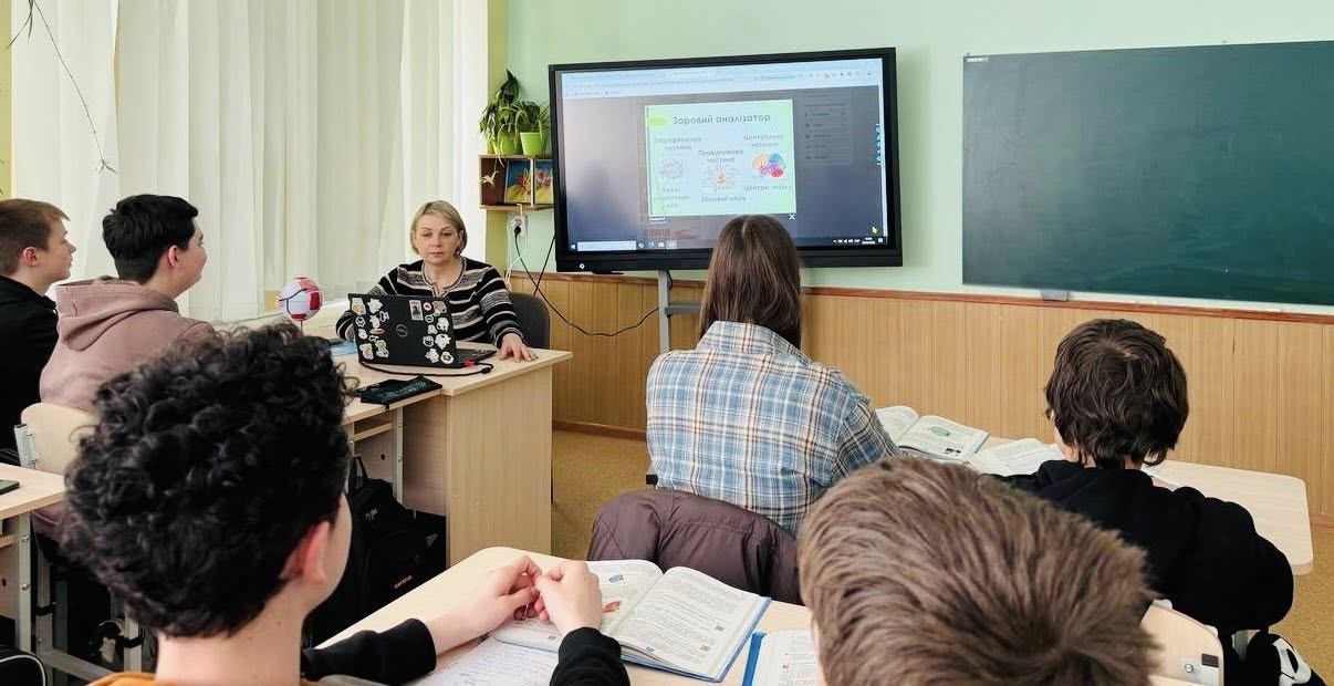 До Всесвітнього дня здоров’я на уроці біології у 8-Б класі розглянули роботу зорового аналізатора – від сприйняття світлових подразнень фоторецепторами очного яблука до формування зорового образу в потиличній частці кори головного мозку. Учні та учениці активно й зацікавлено з’ясовували, як людина не лише дивиться, а й бачить завдяки узгодженій роботі структурних ланок зорової сенсорної системи.