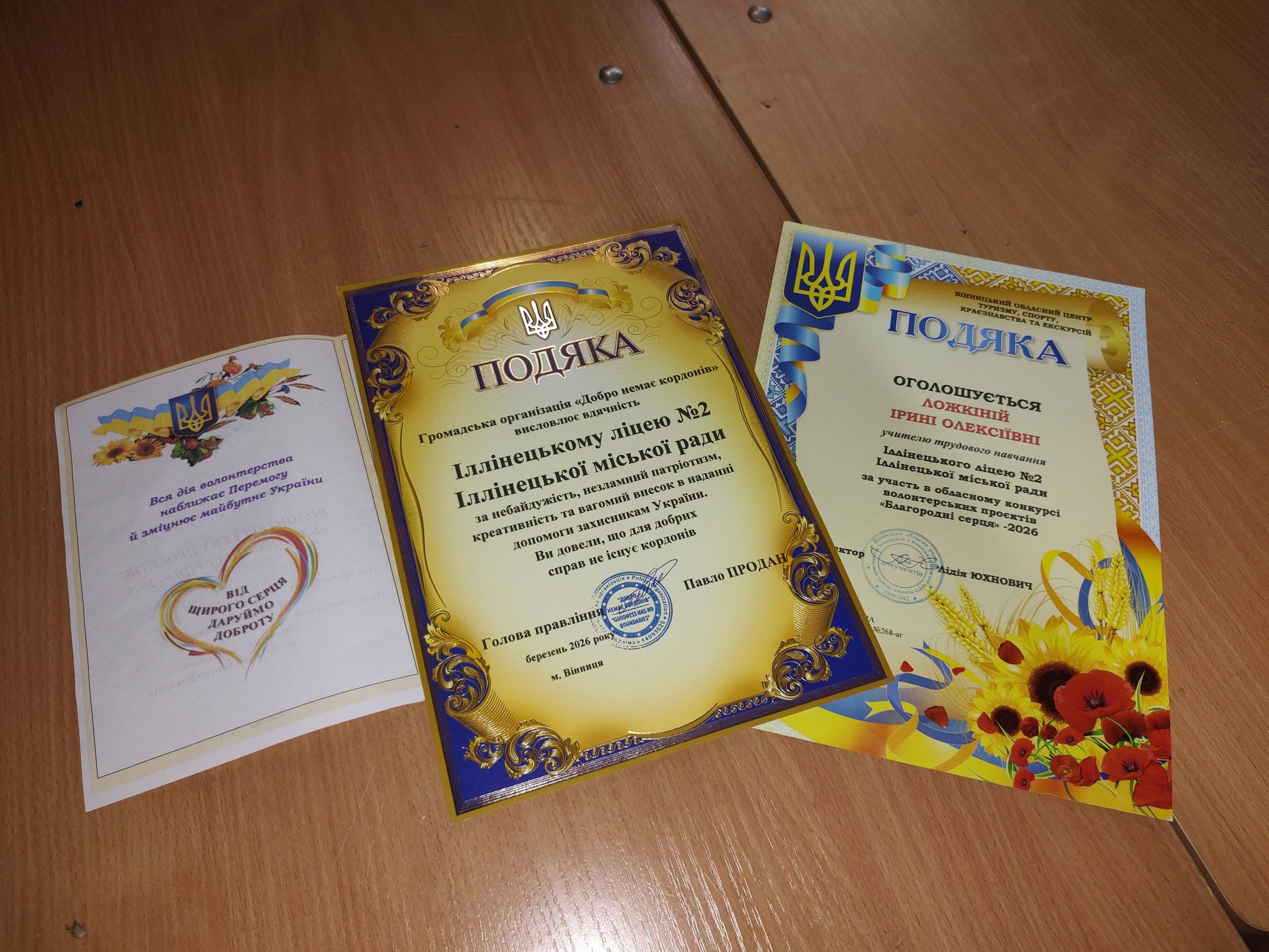 Благородство, що не має кордонів: Іллінецький ліцей №2 відзначено за волонтерську діяльність!